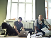 Neuvotelutilan punainen ristikotelointi, seinien saneeraus